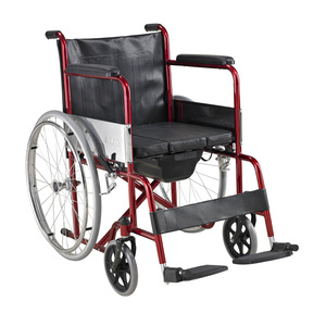 รถเข็นคนพิการน้ำหนักเบาแบบแมนนวล,สำหรับการฟื้นฟูสมรรถภาพผู้สูงอายุอุปกรณ์บำบัดเหล็กสีดำสีแดง