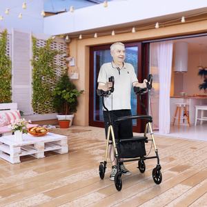 วอล์กเกอร์คนพิการที่มีล้อสามารถดันเดินเสริมที่เท้าแขนผู้สูงอายุวอล์คเกอร์เก้าอี้รถเข็น
