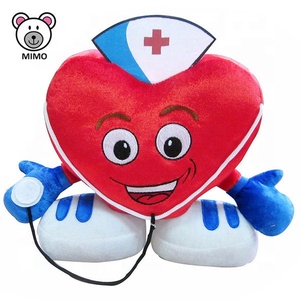แฮนด์เมดที่กำหนดเองพยาบาลหัวใจสีแดงยัดตุ๊กตาของเล่นตุ๊กตาที่มีหูฟังแฟชั่นของขวัญวาเลนไทน์นุ่มแพทย์ของเล่นสีแดงตุ๊กตาหัวใจ